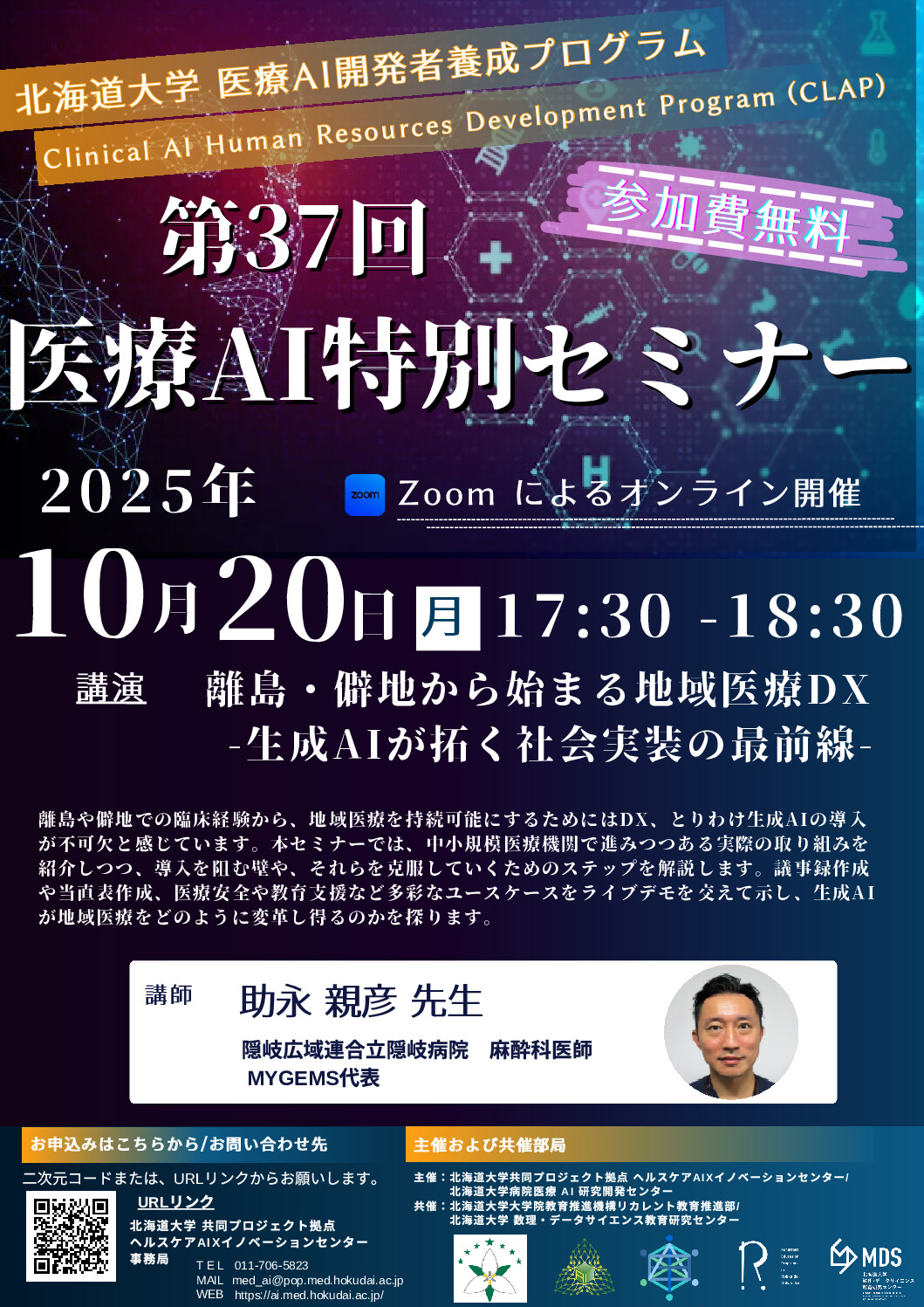 2025年10月20日 北海道大学・第37回 医療AI特別セミナー(令和7年度 第5回)の開催について